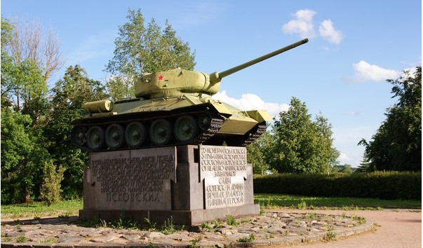 Памятник освободителям Пскова расположен на площади имени 50-летия Октября. Этот памятник представляет собой танк Т-34 - легендарную машину Великой Отечественной войны, установленный на гранитный куб. Именно она стала символом воинского стремления вперед.