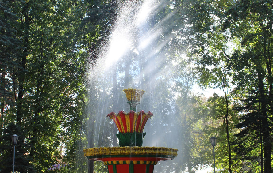 Изначально фонтан был серого цвета. Вечером фонтан освещался изнутри и каждые три минуты менял цвет. Позднее фонтан лишился своей цветной подсветки и был выкрашен в разные цвета.